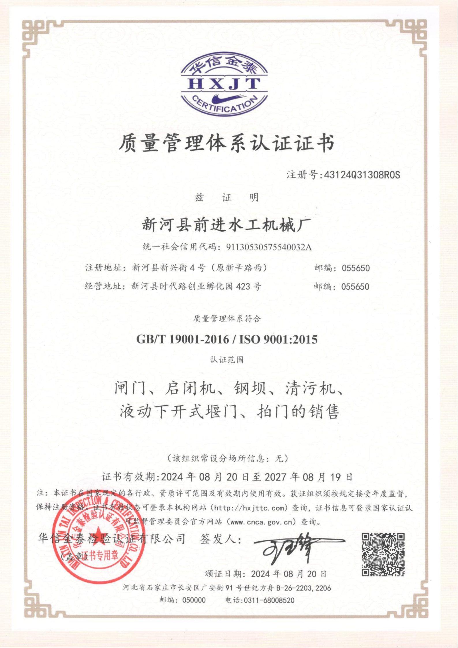 新河縣前進水工機械廠是一家專門從事水利工程設(shè)備研發(fā)生產(chǎn)的廠家,現(xiàn)有員工228人,各類高、中級專業(yè)工程技術(shù)人員近30人,技術(shù)生產(chǎn)工人180多人。公司占地面積14674平方米。公司擁有車、鉗、刨、銑、冷作、鈑金、鑄造等,工種齊全,加工能力和技術(shù)力量雄厚,并具備理化測試手段與儀器設(shè)備。前進水工專注景觀閘門,鋼壩,合頁壩,液壓升降壩,液壓閘門,臥倒門,一字門,人字門,液壓啟閉機,卷揚啟閉機,螺桿啟閉機,清污機,除污機,閘門,拍門等設(shè)備的研發(fā)與生產(chǎn),是新河水利工程產(chǎn)品行業(yè)的領(lǐng)跑者,不僅在同行業(yè)群中揭起了一次又一次的技術(shù)革新,更為水利工程企業(yè)提供了更高更大的選擇平臺。